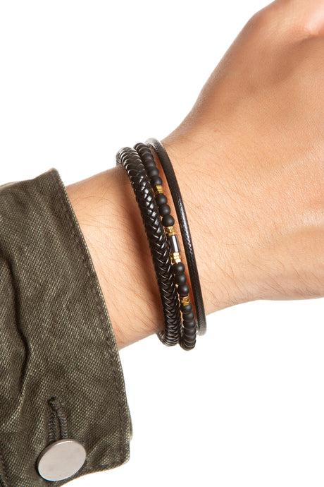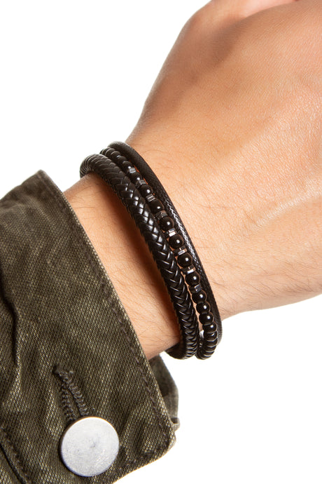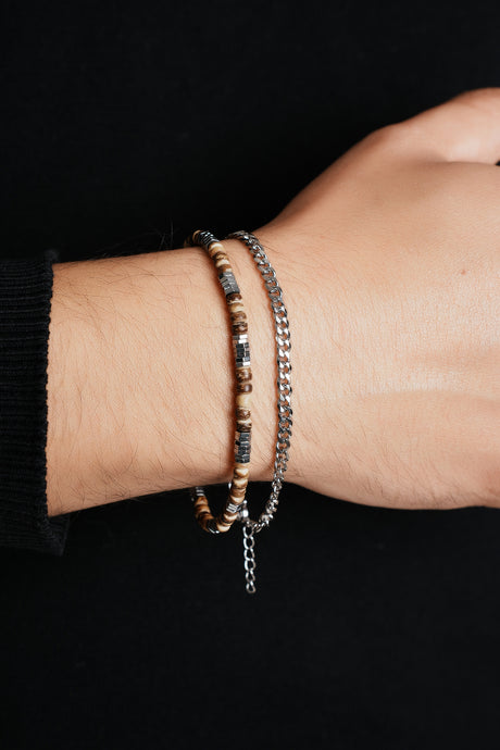 Jun Hematit Detaylı ve İnce Çelik Bileklik 2'li Set