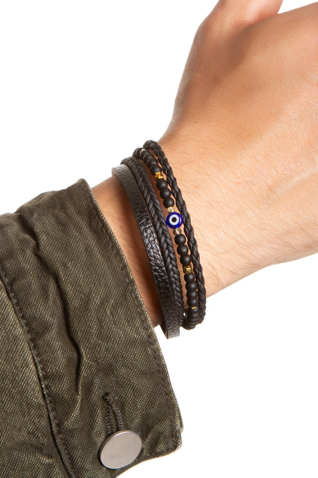 Paris Kaplan Gözü Detaylı Deri Bileklik